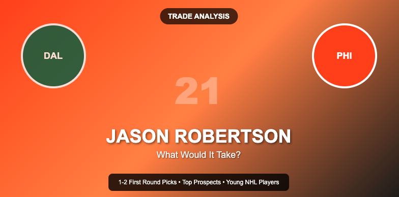 Jason Robertson represents exactly what successful rebuilds look like when they transition to contention – adding proven talent to complement your developing core. The cost will be significant, likely requiring 1-2 first-round picks plus quality young players or prospects, but that’s the price of admission to relevance in today’s NHL.